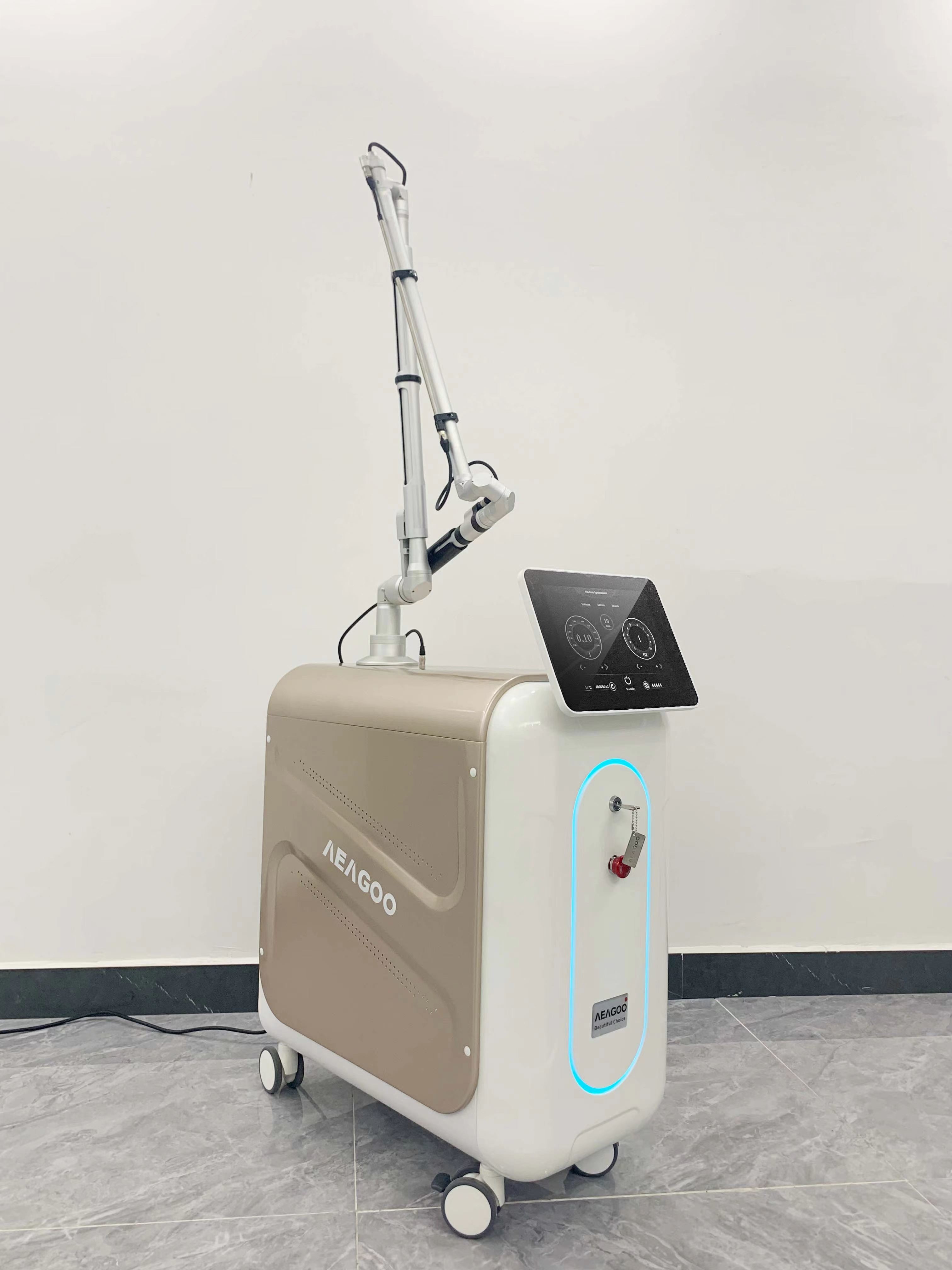 Esta máquina de laser de remoção de tatuagens de picossegundos é um laser Nd Yag portátil com largura de pulso de 450ps, 750ps e 2000ps opcional.com uma potência máxima de 4000 W.